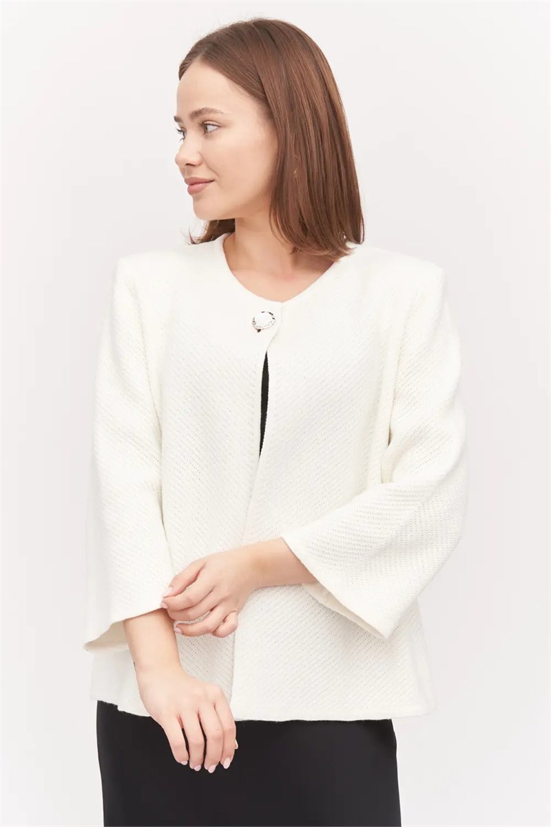 Женский вязаный жакет полуприлегающего силуэта на пуговице с круглой горловиной. Рукава втачные, длинные. Жакет выполнен из качественной пряжи с составом 30% хлопок 70% ПАН. Жакет выполнен переплетением, образующим диагональный рубчик. Легкий, эффектный жакет поддержит и деловой образ, и праздничное настроение. Отлично сочетается с любым низом в комплекте. Модель классическая, праздничная и повседневная, абсолютно на любой случай в жизни.