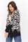 Женский жакет из вязаного трикотажа прямого силуэта с V-образным вырезом, английским воротником. Рукав втачной длинный. Застёжка спереди на пуговицу. Изделие выполнено жаккардовым переплетением, образующим анималистический принт.