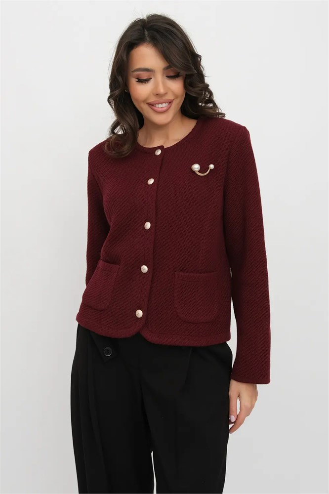 Классический женский вязаный жакет полуприлегающего силуэта на пуговицах с круглой горловиной. Рукава длинные. Жакет выполнен из качественной пряжи с составом 30% хлопок 70% ПАН. Модель имеет функциональные накладные карманы. Жакет выполнен структурным переплетением, за счет чего имеет комфортную посадку по фигуре и эффектный внешний вид. Данный жакет позволяет создать свой стиль на любой вкус и настроение: женственный – с платьем, юбкой, балетками или сапогами. Спортивно-повседневный – с джинсами, брюками. Жакет обеспечивает комфорт и стиль одновременно. Он идеально подходит для создания элегантных образов, будь то деловые встречи, вечерние мероприятия или просто желание выглядеть безупречно в повседневной жизни. Внимание! Декоративные элементы и фурнитура могут отличаться от заявленного на фото!