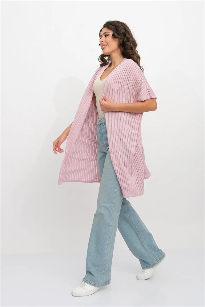 Ажурный легкий вязаный кардиган свободного силуэта со спущенным плечом. Накидка выполнена ажурной вязкой.