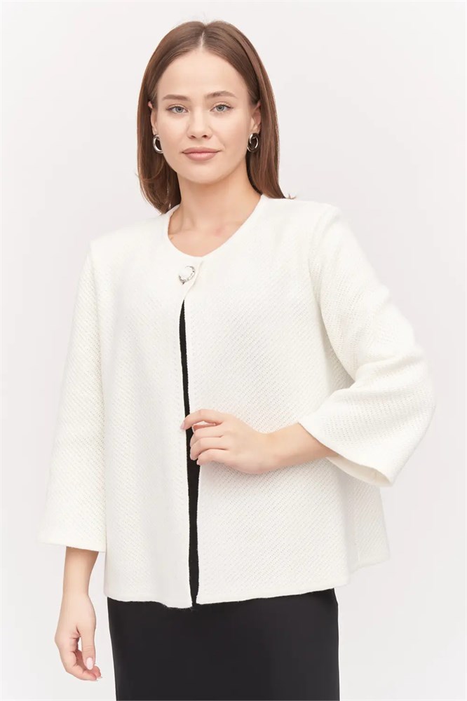 Женский вязаный жакет полуприлегающего силуэта на пуговице с круглой горловиной. Рукава втачные, длинные. Жакет выполнен из качественной пряжи с составом 30% хлопок 70% ПАН. Жакет выполнен переплетением, образующим диагональный рубчик. Легкий, эффектный жакет поддержит и деловой образ, и праздничное настроение. Отлично сочетается с любым низом в комплекте. Модель классическая, праздничная и повседневная, абсолютно на любой случай в жизни.