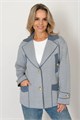 Удлиненный женский трикотажный жакет на пуговицах свободного силуэта. V-образный вырез горловины, воротник классический отложной. Плечо спущеное, рукава втачные длинные, два больших накладных кармана. Жакет выполнен жаккардовым переплетением, образующим рисунок-ёлочка.