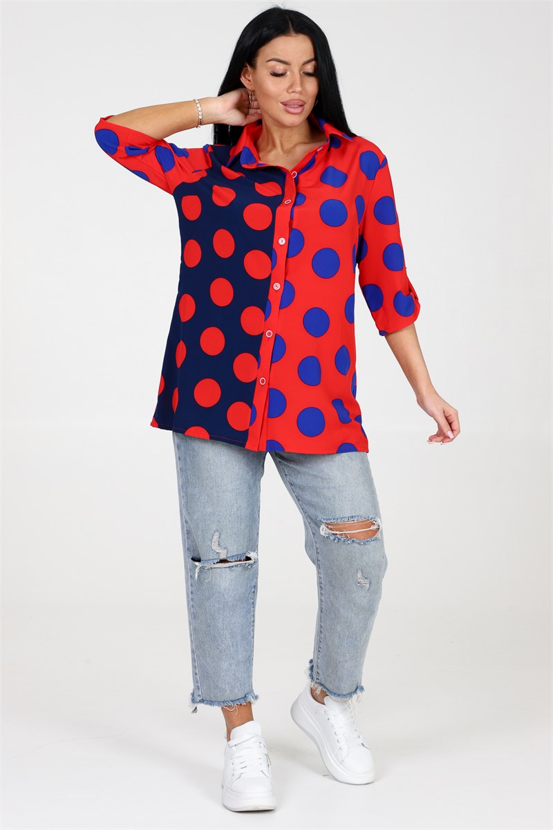 Наша туника - это верхняя одежда с особым рисунком в виде гороха, а также оригинальным сочетанием двух расцветок. Туника не только стильна, но и комфортна. Она обладает удобными рукавами три четверти подобранными на паты, что придает ей еще более элегантный вид. Модель также дополнена рубашечным воротником, который придает тунике изысканности. Мы предлагаем Вам купить эту уникальную тунику и погрузиться в мир моды и комфорта. Наш товар соответствует самым высоким стандартам качества, поэтому Вы можете быть уверены, что она прослужит Вам долгое время. Женская туника на пуговицах, изготовленная из ткани Прадо, с рисунком гороха и оригинальным сочетанием двух расцветок, станет Вашим незаменимым атрибутом стиля и элегантности. Не упустите возможность приобрести эту модель уже сегодня!