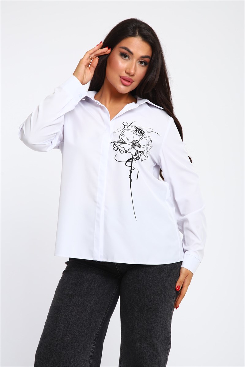 Размерный ряд от 50 до 56 обеспечивает комфортное и идеальное прилегание, соответствующее индивидуальным параметрам фигуры. Белая классическая рубашка - это незаменимый элемент женского гардероба, который никогда не выходит из моды и подходит для различных ситуаций, будь то деловая встреча, официальное мероприятие или повседневный городской стиль. Белая рубашка с длинным рукавом и воротником на стойке идеально подходит для создания строгого делового образа. Использование лучших натуральных тканей обеспечивает комфорт и долговечность, что делает эту рубашку практичным выбором для частого использования. Уникальный рисунок на полочке привлекает внимание и добавляет оригинальности вашему образу. Простота и элегантность делают эту рубашку подходящей как для ежедневных, так и для торжественных мероприятий.