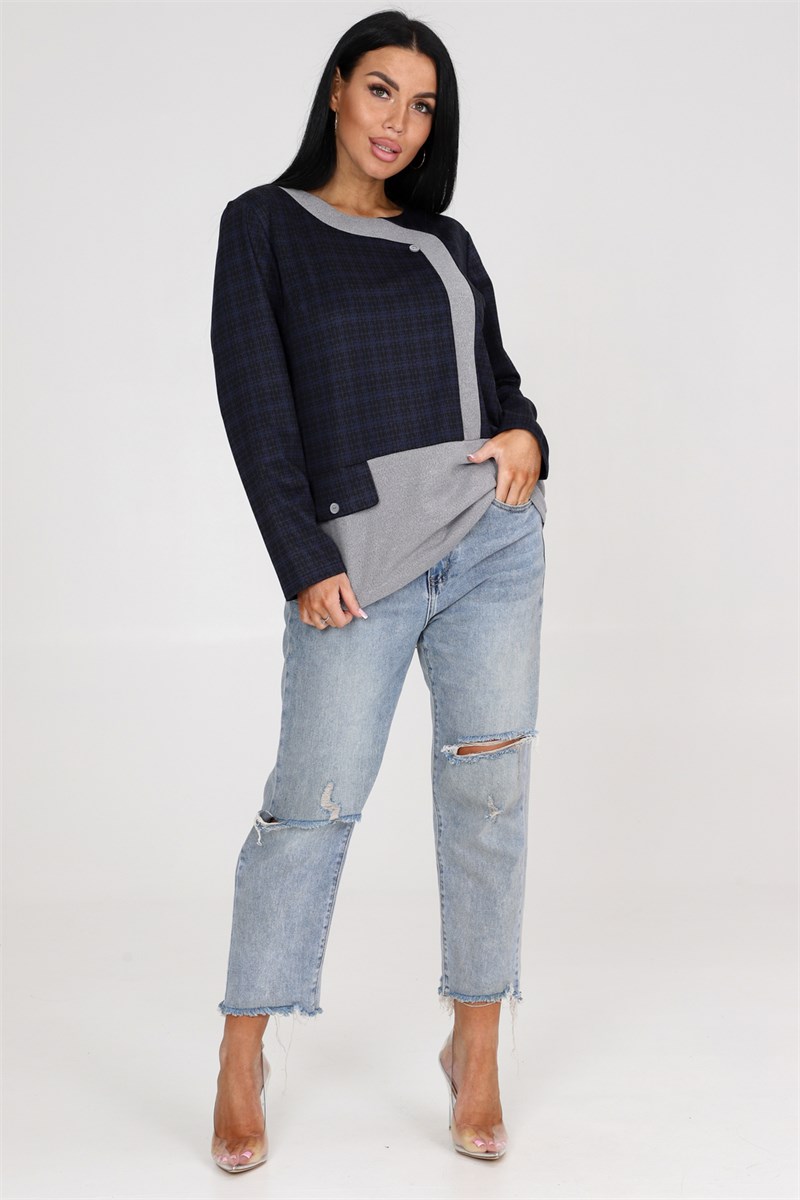 Туника прямого кроя с округлой горловиной и длинным рукавом идеальная находка для тех, кто ценит стиль и комфорт. Эта универсальная одежда подойдет для самых разнообразных случаев от повседневных выходов до особых мероприятий. Однотонная вставка по горловине и снизу изделия придают тунике особый шарм и уникальность. Благодаря этой детали она становится настоящим предметом гордости в гардеробе. А клапан на полочке сбоку добавляет дополнительную изюминку и закрывает все основные требования моды.