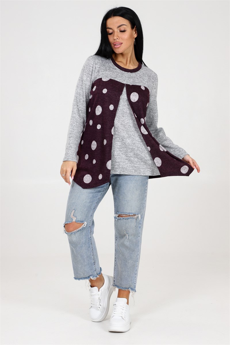 Оригинальная теплая туника в горох 2 в 1 с однотонной вставкой идеальный выбор для стильных девушек, которые ценят комфорт и уникальность. Эта модель обладает всеми необходимыми характеристиками, чтобы сделать ваш образ неповторимым. Главной особенностью этой туники является ее многофункциональность. Благодаря инновационной конструкции, она может быть надета двумя разными способами как туника с горошком на передней части, или как однотонная туника с горохом на задней части. Вы сможете варьировать свой образ в зависимости от настроения и события. Теплая ткань обеспечивает максимальный комфорт в холодные дни, а длинные рукава добавляют дополнительного уюта. Необычный округлый вырез, отделанный стильным кантом, делает эту тунику еще более привлекательной и эксклюзивной.