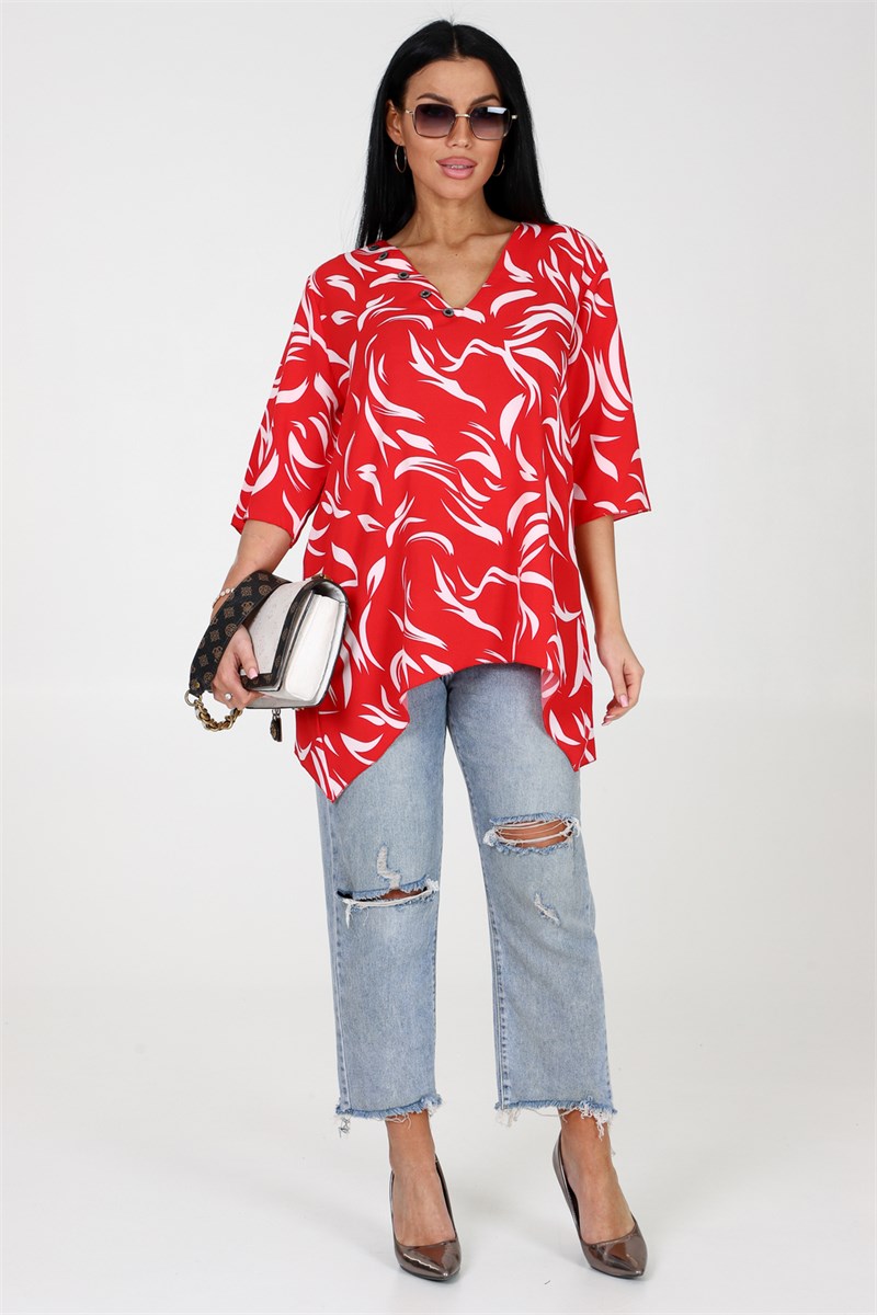 Ищете универсальную и стильную тунику? Наша туника свободного кроя идеальный выбор для современной женщины! V-образная горловина, украшенная декоративными пуговицами, придает образу изысканность. Рукав 3/4 обеспечивает комфорт в любую погоду.