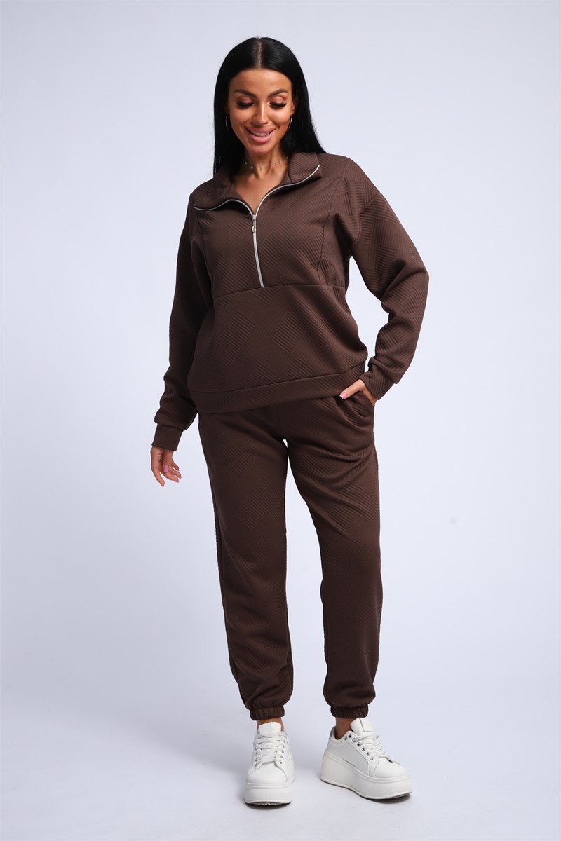 Ищете идеальный спортивный костюм? Этот женский костюм из мягкой и уютной ткани фукра воплощение комфорта и стиля! Толстовка с манжетами и воротником-стойкой, застегивающаяся на молнию, обеспечит тепло и защиту от ветра. Горловина на молнии позволяет регулировать температуру и создавать различные образы.