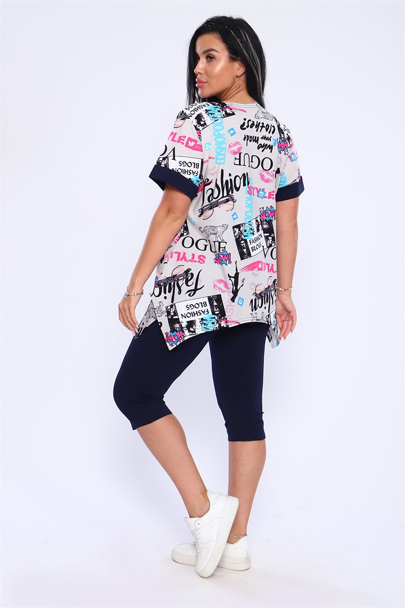 Костюм из кулирки женский из качественного трикотажного полотна, состоит из туники и бридж. Темные бриджи, длина чуть ниже коленей. Повседневный костюм.