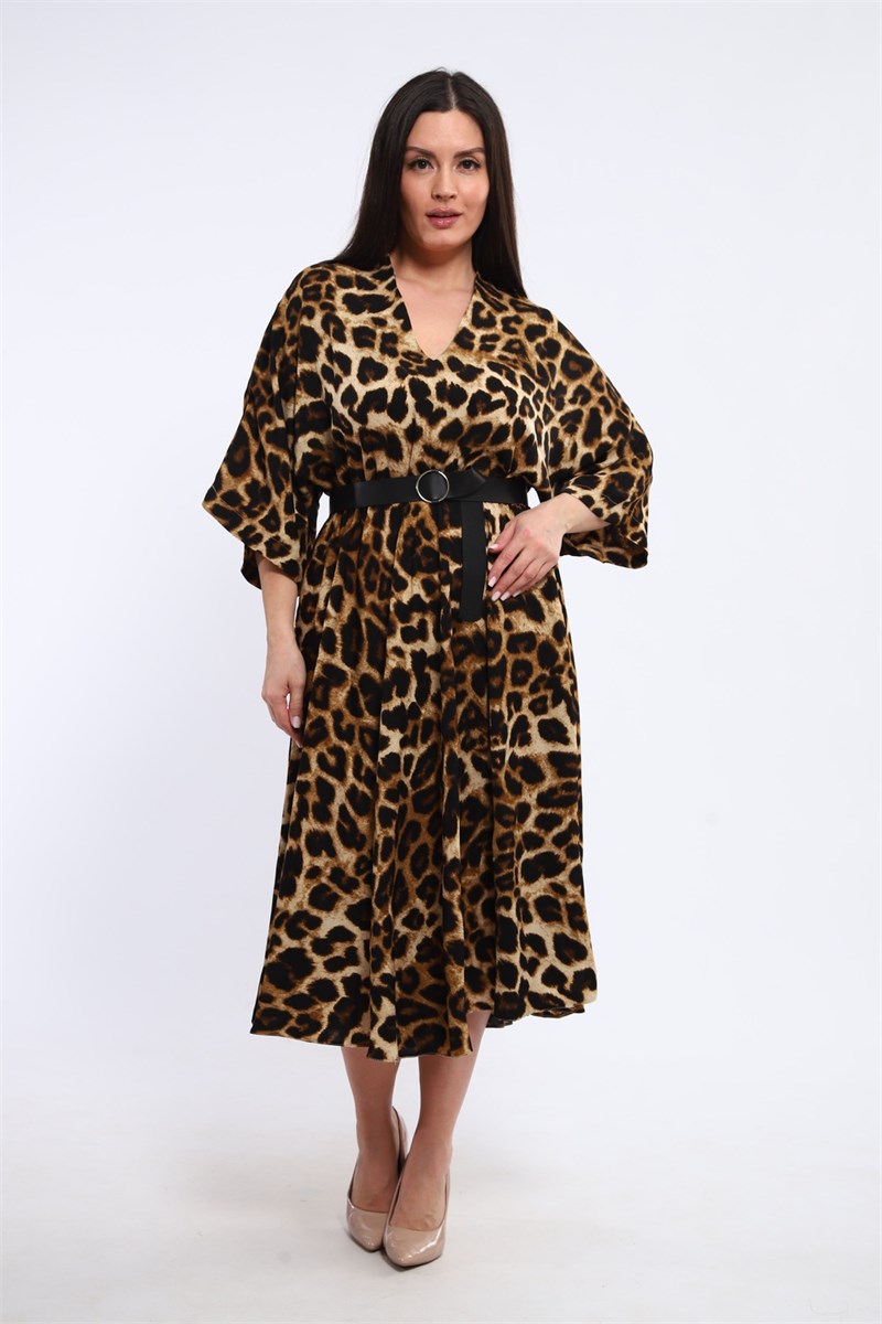 Погрузитесь в мир дикой моды с нашим потрясающим женским платьем с леопардовым принтом! Это платье идеальный выбор для тех, кто хочет добавить смелости и уверенности в свой гардероб. Выразительный леопардовый рисунок, актуальный вне времени, подчеркнет вашу индивидуальность и выделит вас из толпы. Это элегантное платье отрезное по линии талии, что визуально создает стройный силуэт, подчеркивая ваши достоинства. Легкая и воздушная юбка полусолнце добавляет образу женственности и романтичности, обеспечивая свободу движений и комфорт. V-образный вырез этого платья деликатно подчеркивает линию шеи и декольте, делая образ более соблазнительным и утонченным. Рукав летучая мышь придает платью особый шарм и обеспечивает свободу движений, скрывая возможные недостатки в области плеч. В комплекте с платьем идет стильный ремень, который идеально дополняет образ, подчеркивая талию и создавая более женственный силуэт. Вы можете носить его с ремнем для создания более структурированного образа или без него, для более расслабленного и непринужденного стиля. Это леопардовое платье идеально подходит для различных случаев: от вечеринок и свиданий до повседневных прогулок и офисных будней (если дресс-код допускает). Легкая и приятная к телу ткань обеспечивает комфорт в течение всего дня. Преимущества: Эффектный леопардовый принт: Будьте в центре внимания! Подчеркивает фигуру: Отрезное по талии, юбка полусолнце. Стильный V-образный вырез: Подчеркивает линию шеи. Удобный рукав летучая мышь: Свобода движений. Ремень в комплекте: Добавляет акцент на талии. Универсальность: Подходит для разных случаев. Высокое качество материалов: Обеспечивает комфорт и долговечность.