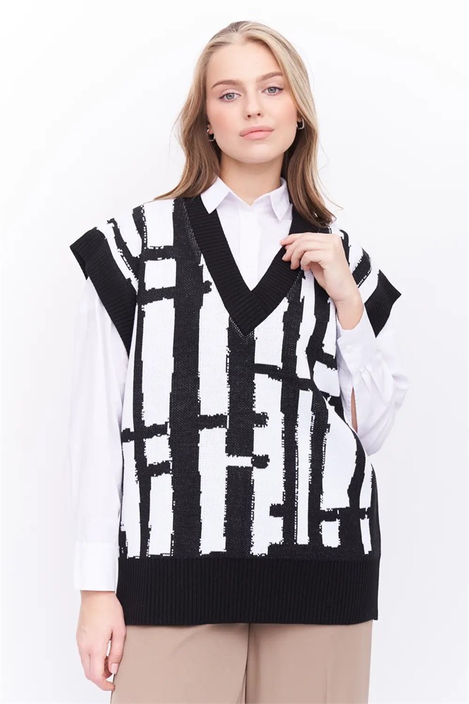 Классический вязаный жилет для женщин с шерстью в составе согреет в холодную погоду и станет отличной базой для создания делового образа. Необычный геометрический принт безрукавки понравится девочкам-подросткам и девушкам, а в сочетании с классическими элементами трикотажного пуловера в виде v-выреза и прямого силуэта придется по душе и взрослым женщинам. Жилет - отличный вариант для похода в офис и на учебу, подойдет в качестве элемента школьной формы. Прекрасная вещь для второго слоя при создании утепленных осенних образов.